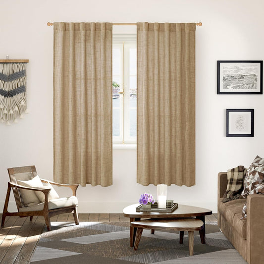 YoungsTex Toffee Linen Curtains 72 Inch Length for Living Room, Burlap Semi Sheer Drapes Light Filtering Tan Window Treatments for Farmhouse Bedroom Rod Pocket Back Tab, 42 X 72 Inch, 2 Panels