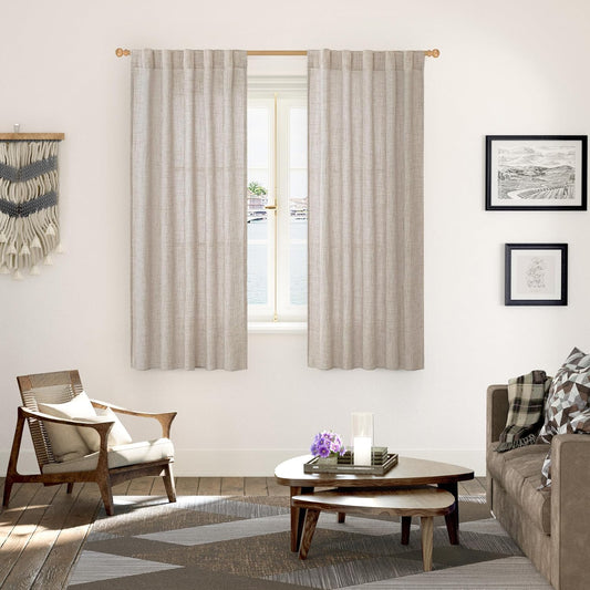 YoungsTex Oatmeal Linen Semi Sheer Curtains 63 Inch Length for Living Room, Light Filtering Window Drapes with Back Tab for Bedroom, 2 Panels, 40 X 63 Inch