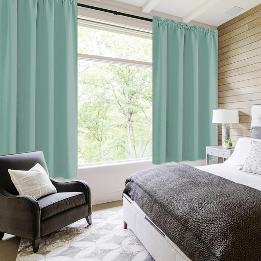 RYB HOME Bedroom Curtains Blackout - Light Block Energy Efficiency Small Window Treatment Drapes for Kitchen Dining Baby Nursery Morden Decor, W 42 x L 54 inch, Sea Green, 2 Panels