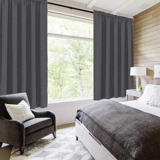 DWCN Bedroom Curtains Blackout Drapery Panels 54 Inch Length 2 Panels Set, Three Pass Microfiber Thermal Insulated Energy Saving Rod Pocket Window Treatment Drapes (W42 x L54 Inch, Dark Grey)