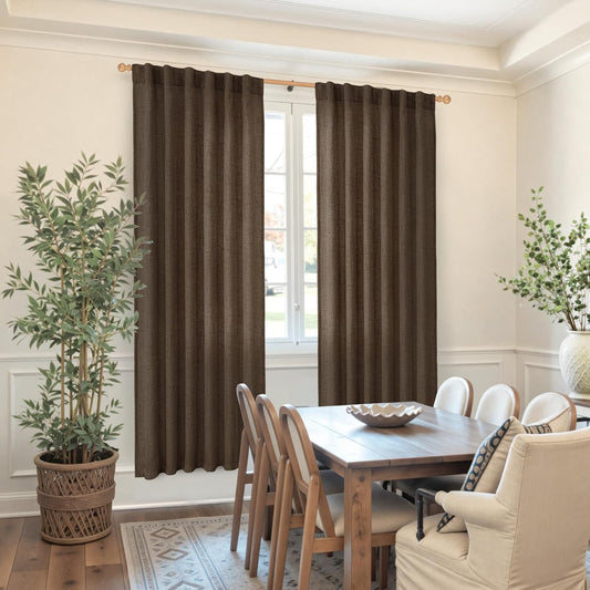 YoungsTex Brown Linen Curtains 78 Inch Length for Living Room, Semi Sheer Window Drapes with Rod Pocket Back Tab Light Filtering for Bedroom Office Farmhouse, 2 Panels, 52 X 78 Inch