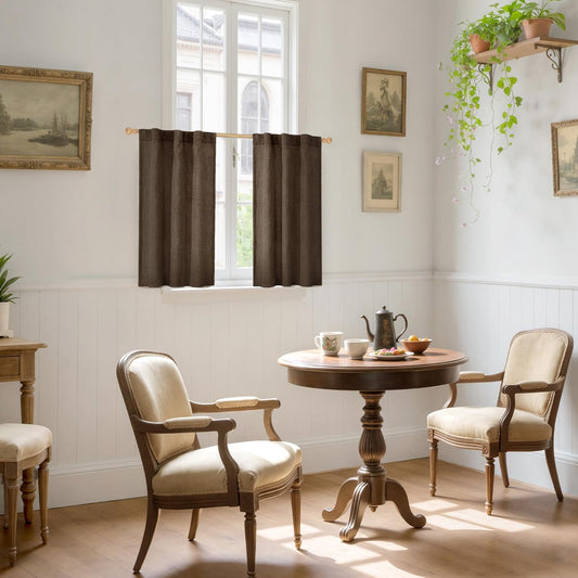 YoungsTex Brown Linen Kitchen Curtains 36 Inch Length, Half Window Drapes Light Filtering Semi Sheer with Rod Pocket Back Tab for Cafe Bathroom Window Over Sink, 30 x 36 Inch, 2 Panels