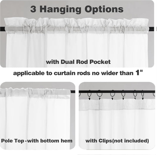 Chyhomenyc White Sheer Curtains 30 inch Length 2 Panels, Light Filtering Voile Rod Pocket Short Window Curtians for Bathroom Living Room Farmhouse Small Windows, 42Wx30L inches