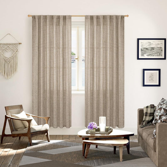 YoungsTex Linen Curtains 90 Inch Length for Living Room, Light Filtering Semi Sheer Window Drapes Rod Pocket Back Tab Curtain for Bedroom Dining Room Office Privacy, 2 Panels, 52 X 90 Inch