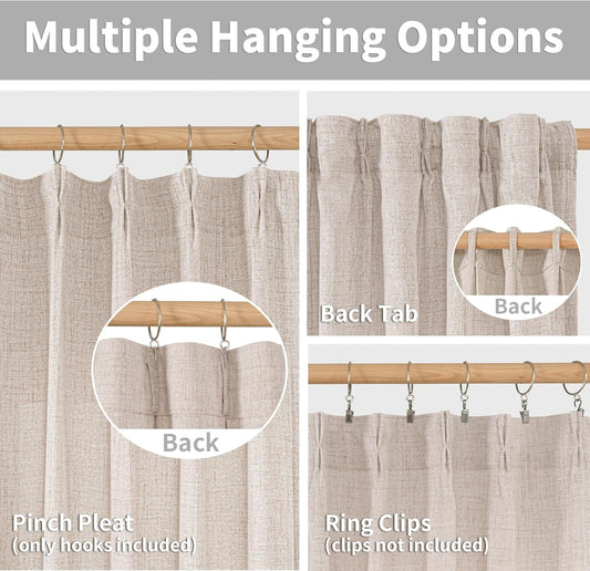 YoungsTex Natural Linen Curtains 63 Inch Length 2 Panels - Light Filtering Semi Sheer Window Drapes Textured Rustic with Pinch Pleated for Bedroom Living Room Office, 2 Panels, 40 X 63 Inch