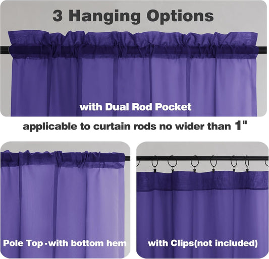 Chyhomenyc Purple Sheer Curtains 72 Inch Length 2 Panels, Light Filtering Soft Airy Rod Pocket Voile Window Curtain Drapes for French Door Bedroom Living Room, Each 42Wx72L Inches