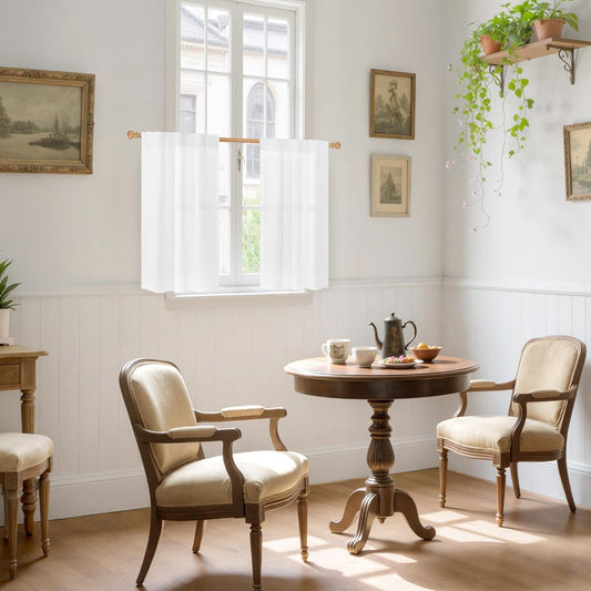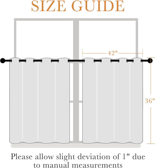 YoungsTex White Cafe Curtains 36 Inch Length for Window Over Sink - Linen Semi Sheer Drapes with Rod Pocket Back Tab Lightweight for Bathroom Kitchen, 2 Panels, 30 X 36 Inch