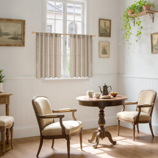 YoungsTex Dark Oatmeal Linen Curtains 40 Inch Length for Kitchen Window, Short Semi Sheer Drapes Burlap Textured Light Filtering with Rod Pocket Back Tab for Cafe Bathroom, 2 Panels, 42 X 40 Inch