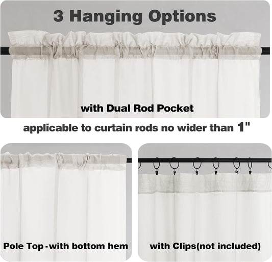 Chyhomenyc Sheer Ivory Valances for Windows 2 Pack, Small Window Curtains for Living Room Bathroom Cafe Laundry Basement, Modern Top Dual Rod Pocket Voile Curtain, 42W x 18L inches, Ivory