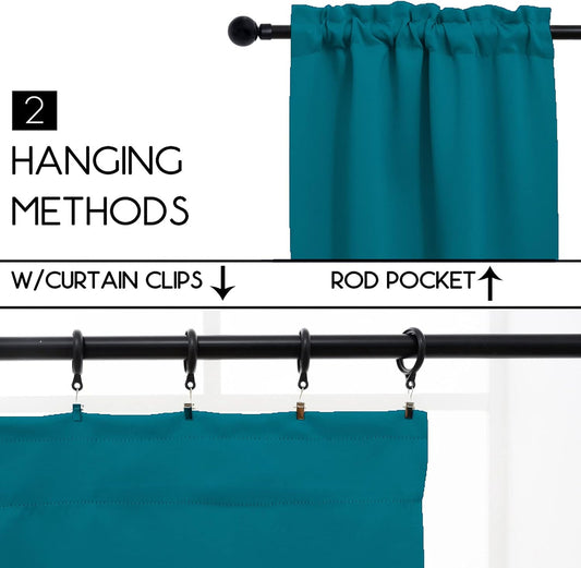 Pickluc Teal Cafe Curtain 30 Inches Length, Rod Pocket Small Kitchen Half Window Curtain, Short Blackout for Small Window, 30" Wide and 30" Long, 2 Panels