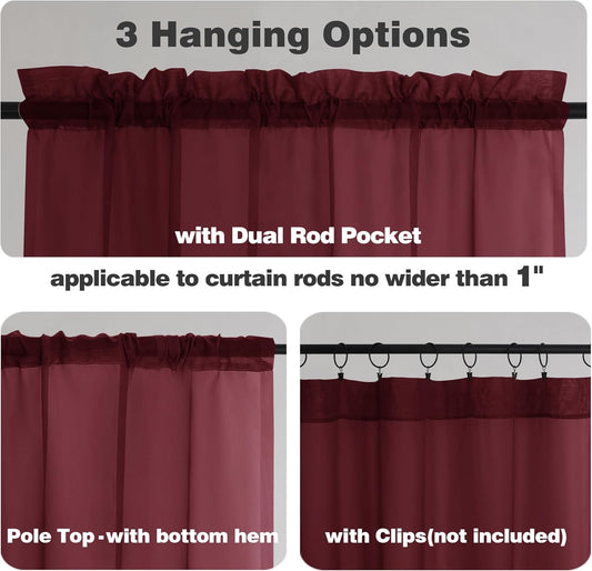 Chyhomenyc Burgundy Sheer Curtains 84 Inches Long 2 Panels Set, Light Filtering Voile Window Drapes for Bedroom Living Room, 42Wx84L Inch, Burgundy, 2PCS