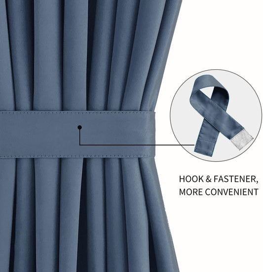 DWCN French Door Curtains – Rod Pocket Thermal Blackout Curtain for Doors with Glass Window, Kitchen and Patio Doors for Privacy, 25 X 40 Inches Long, 1 Curtain Panel with Tieback,Dusty Blue