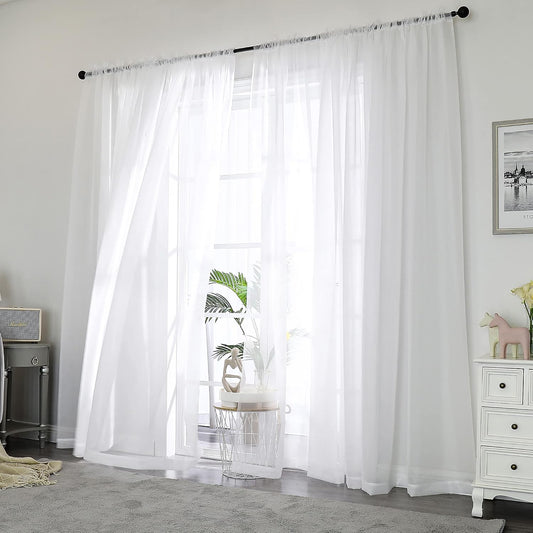 Chyhomenyc White Sheer Curtains 84 Inches Long 2 Panels Set - Light Filtering White Curtains for Living Room, Soft Gentle Voile Rod Pocket Bedroom Window Drapes, 42Wx84L Inch, 2PCS