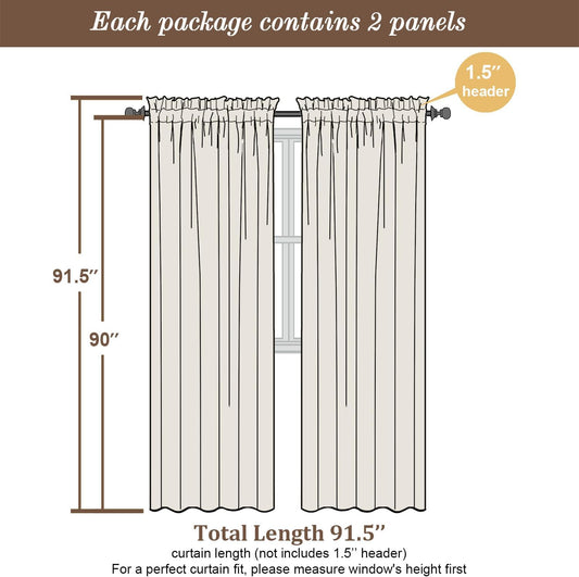 Chyhomenyc Ivory Sheer Curtains 90 Inches Long 2 Panels, Light Filtering Ivory Curtains for Living Room, Soft Gentle Voile Rod Pocket Bedroom Window Drapes, 59Wx90L Inch, 2PCS