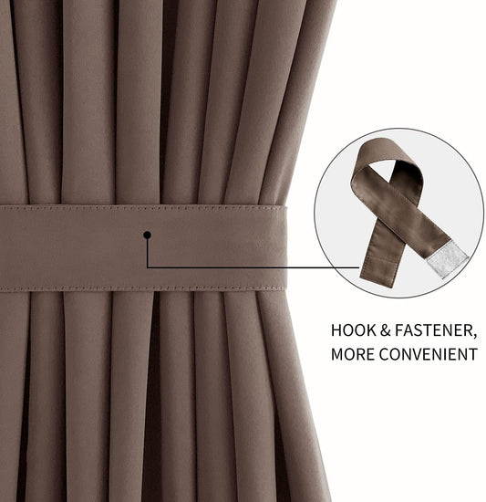 DWCN French Door Curtains – Rod Pocket Thermal Blackout Curtain for Doors with Glass Window, Kitchen and Patio Doors for Privacy, 25 X 40 Inch Length, 1 Curtain Panel with Tieback, Brown