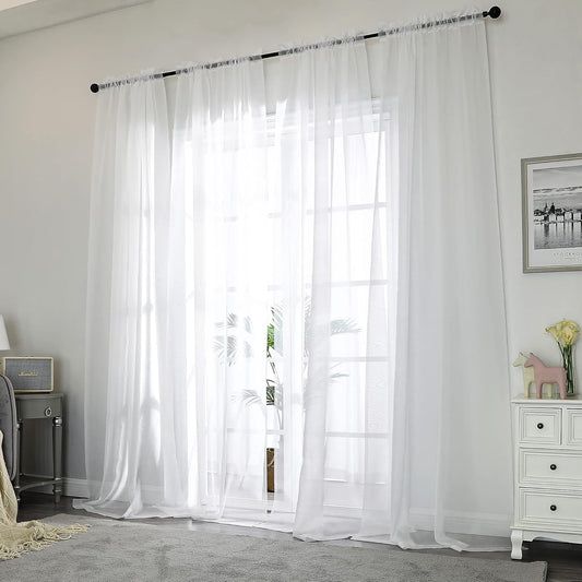 Chyhomenyc White Sheer Curtains 96 inches Long 2 Panels Set, Light Filtering Airy Solid Voile Window Treatment Drapes for Bedroom Living Room, Each 42Wx96L, 8FT Long, Set of 2, White