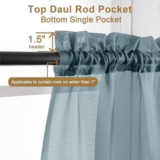 Chyhomenyc Sheer Stone Blue Curtains 90 inches Long 2 Panels, Light Filtering Soft Airy Solid Elegant Voile Window Treatment Drapes for Bedroom Living Room Wedding Party Decor, 42 Wx90 L Inches