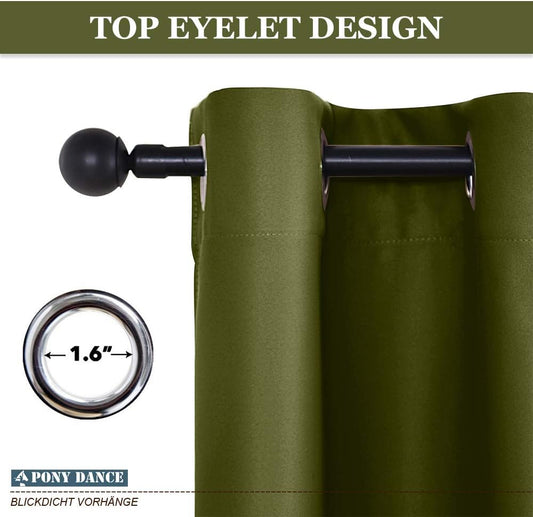 PONY DANCE Window Curtain Tiers - (42 by 36 inches, Olive Green, 2 Pieces) Room Darkening Curtains Short Panels Drapes for Small Half Window Kitchen Decor