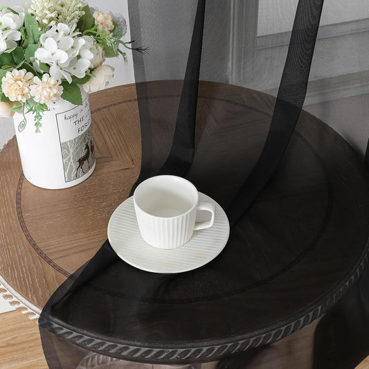 Chyhomenyc Black Sheer Curtain 72 Inches Length 2 Panels, Voile Top Dual Rod Pockets Light Filtering Airy Window Treatment Drapes for Living Room/Bedroom, Each 42Wx72L