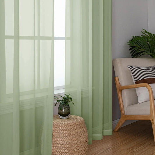 Chyhomenyc Living Room Sheer Curtains 96 Length 2 Panels Set for French Door, Gorgeous Window Decoration for Wedding & Party & Backdrop & Canopy, Sage Green, Each 42Wx96L in, 8 Feet