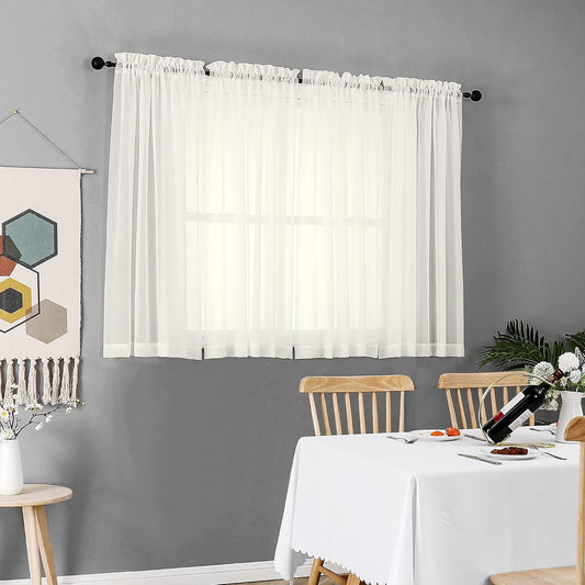 Chyhomenyc Ivory Sheer Window Curtain Panels 45 Inch, Set of 2, Light Filtering Solid Voile Curtains Drapes for Small Window/Living Room/Bedroom, Rod Pocket, 42W x 45L inches