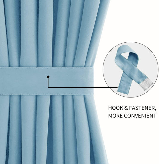 DWCN French Door Curtains – Rod Pocket Thermal Blackout Curtain for Doors with Glass Window, Kitchen and Patio Doors for Privacy, 25 X 72 Inches Long, 1 Curtain Panel with Tieback, Light Blue