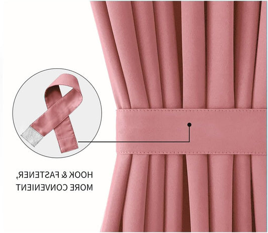 DWCN French Door Curtains – Rod Pocket Thermal Blackout Curtain for Window/Doorways/Kitchen/Classroom/Patio Doors for Privacy, 54W by 72L Inches, 1 Panel with Tieback, Dry Rose