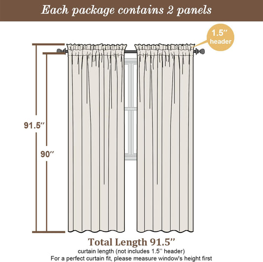Chyhomenyc White Sheer Curtains 90 Inches Long 2 Panels, Light Filtering White Curtains for Living Room, Soft Gentle Voile Rod Pocket Bedroom Window Drapes, 59Wx90L Inch, 2PCS