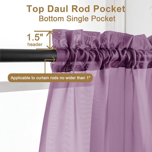 Chyhomenyc Plum Sheer Curtains 63 Inch Length 2 Panels, Rod Pocket Solid Window Sheer Curtain Panels, Elegant Curtains & Drapes for Living Room Bedroom 2 Panels (Plum, 42 W x 63 L)