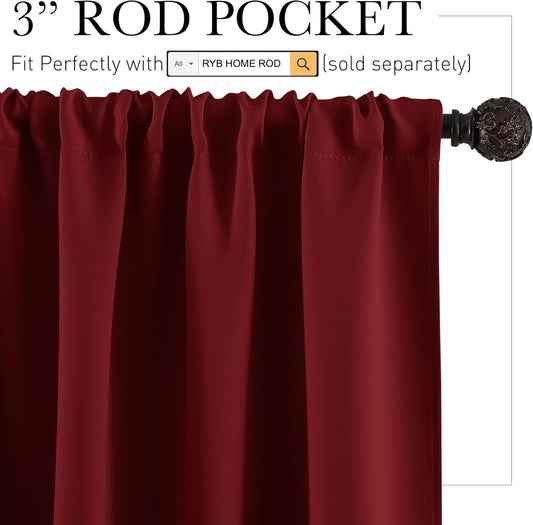 RYB HOME Blackout Curtains for Half Window Kitchen, Thermal Insulated Curtain Panels for Bedroom/Living Room, 42 x 36 inches Each Panel, Burgundy Red, 2 Panels