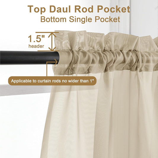Chyhomenyc Taupe Sheer Curtains 72 Inch Length 2 Panels, Light Filtering Soft Airy Rod Pocket Voile Window Curtain Drapes for French Door Bedroom Living Room, Each 42Wx72L Inches