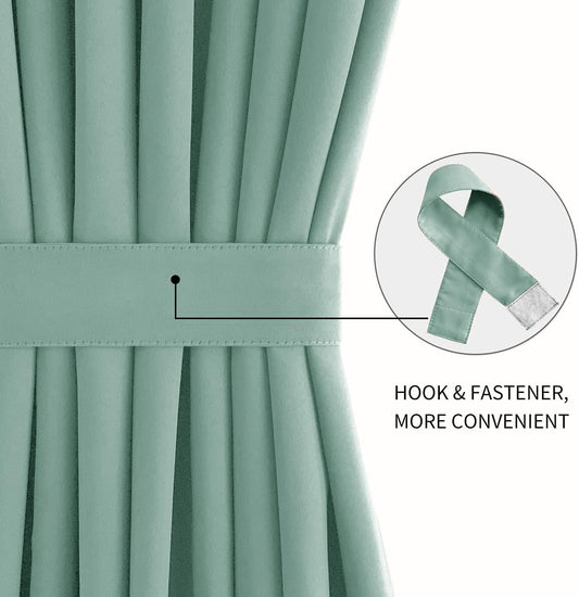 DWCN French Door Curtains – Rod Pocket Thermal Blackout Curtain for Doors with Glass Window, Kitchen and Patio Doors for Privacy, 25 X 72 Inches Long, 1 Curtain Panel with Tieback, Mint Green