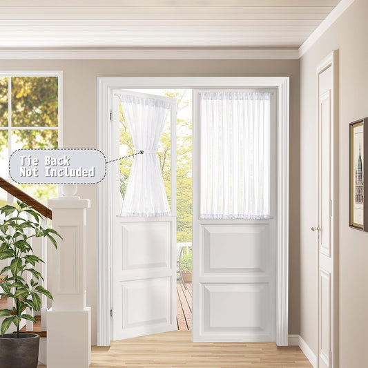 Tollpiz Short Sheer Door Curtain Closet Linen Textured Curtain Sheers Doorway Light Filtering Voile Patio Glass Door Rod Pocket Curtains French Door, 54 x 54 inches Long, White, Set of 1 Panel