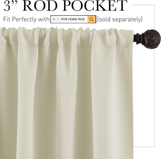 RYB HOME Blackout Curtains for Bedroom, Window Shades Thermal Insulating Privacy Drapes for Living Room Classroom Kitchen Bathroom Dining, Wide 42 x Long 72 inch, Natural 2 Panels