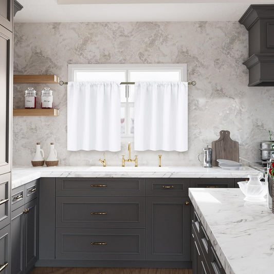 RYB HOME Room Darkening Curtains - Rod Pocket Half Light Block Drapes Window Shades for Bedroom Bathroom Living Room Kitchen Office Dining Decor, W 42 x L 45, Pure White, 2 Pieces
