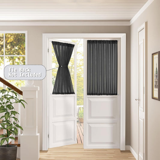 Tollpiz Short Sheer Curtains Closet Linen Textured Curtains Sheer Doorway Light Filtering Voile Patio Glass Door Rod Pocket Curtain French Door, 54 x 40 inches Long, Black, Set of 1 Panel
