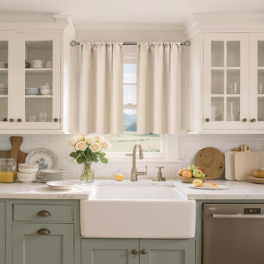 RYB HOME Small Window Curtains Blackout - Privacy Energy Saving Insulating Curtains Blinds for Bedroom Bathroom Basement Kids Nursery Kitchen, W 34 x L 48 inches, Beige, 2 Panels