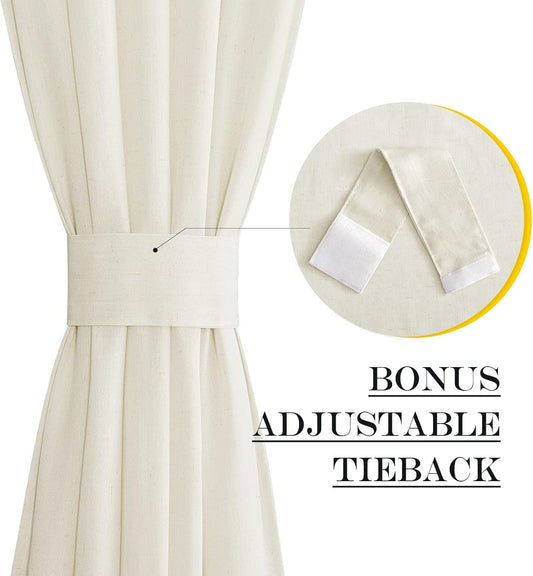 NICETOWN Faux Linen French Door Curtain 72 Inch Length Farmhouse Window Curtains Country Rustic Door Curtain Panel with Tieback, Rod Pocket Light Filtering Shade, 1 PC, White, 52" Width