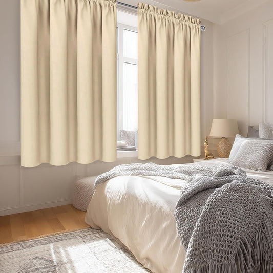 DWCN Blackout Curtains Room Darkening Thermal Insulated Bedroom Curtains Window Curtain Panels, 52 x 45 inches Long, Set of 2 Beige Rod Pocket Drapes