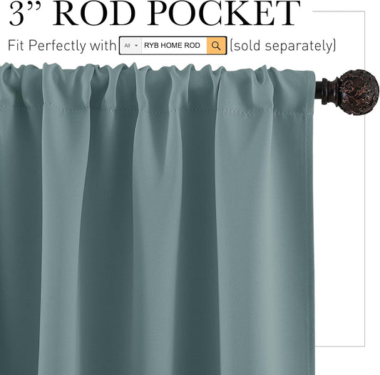 RYB HOME Short Blackout Curtains 36 inches, Solid Heavy Duty Small Window Treatment Room Darkening Privacy Draperies for Basement Bathroom Bedroom, Stone Blue, W42 x L36 inch, 2 Panels