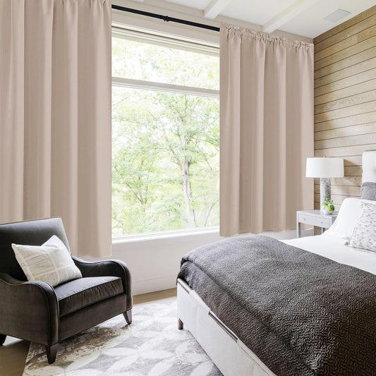 DWCN Blackout Curtains for Bedroom – Rod Pocket Thermal Insulated Noise Reducing Noise Reducing Drapes for Living Room, W 42 x L 54 Inch, 2 Panels, Light Beige