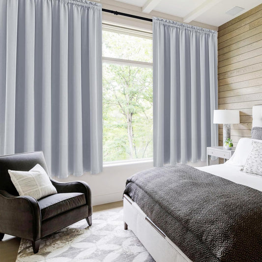 DWCN Blackout Curtains for Living Room Thermal Insulated, Energy Saving & Noise Reducing Bedroom Curtains, Silver Grey, W 70x L 72 Inch, Set of 2 Rod Pocket Curtain Panels