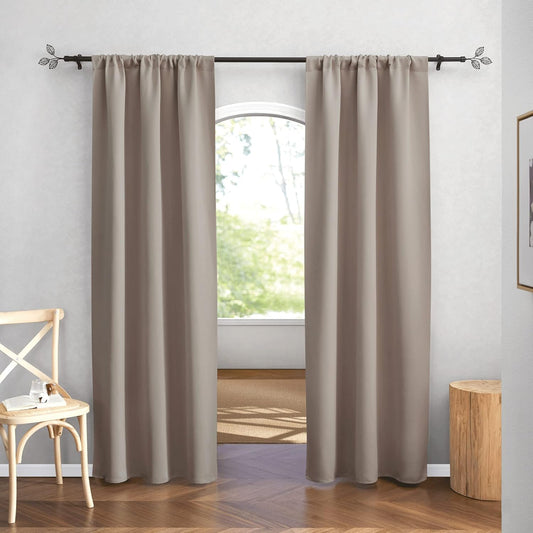 RYB HOME Room Darkening Curtains for Bedroom, Thermal Insulated Noise Reducing Window Drapes Farmhouse Decor for Living Room Kitchen, W42 x L84 inch, 2 Panels, Sand
