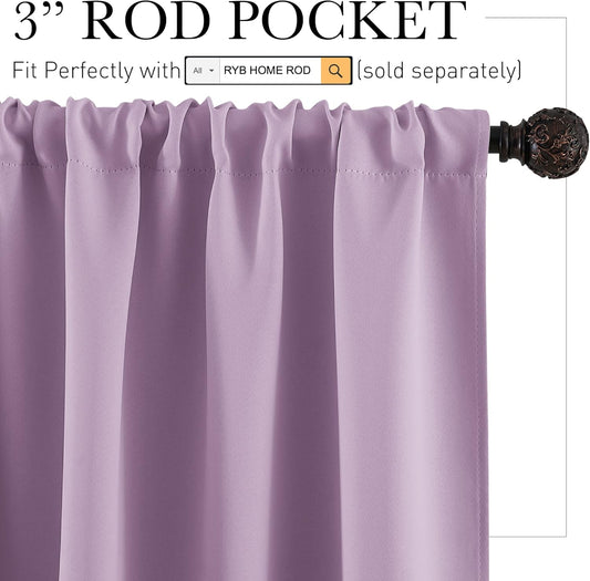 RYB HOME 70 inch Wide Curtains Blackout, Solid Durable Room Darkening Drapes for Bedroom Thermal Insulated Window Drapes for Living Room, W70 x L84 inch, 2 Panels, Lilac