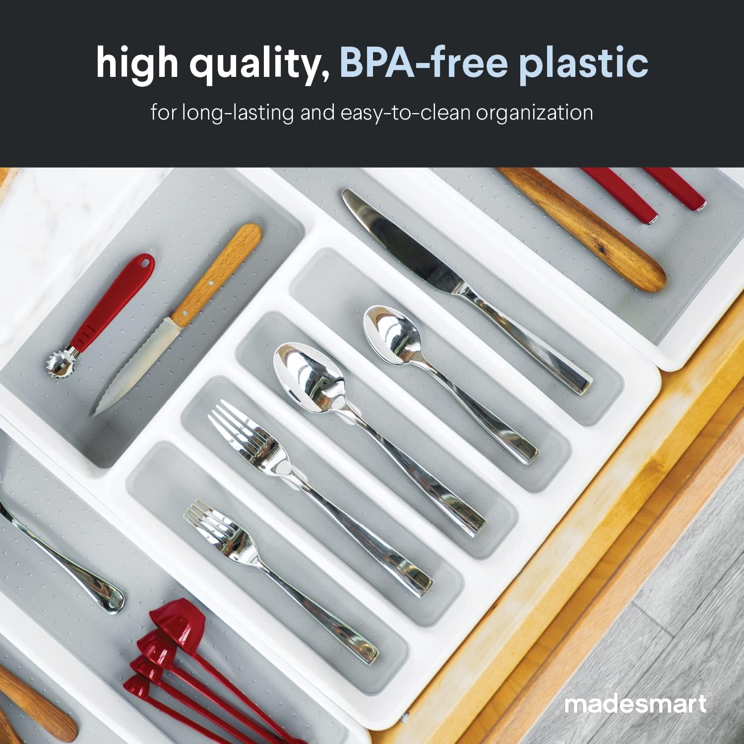 madesmart Classic Large Silverware Tray - White |CLASSIC COLLECTION | 6-Compartments| Kitchen Drawer Organizer | Soft-Grip Lining and Non-Slip Rubber Feet | BPA-Free