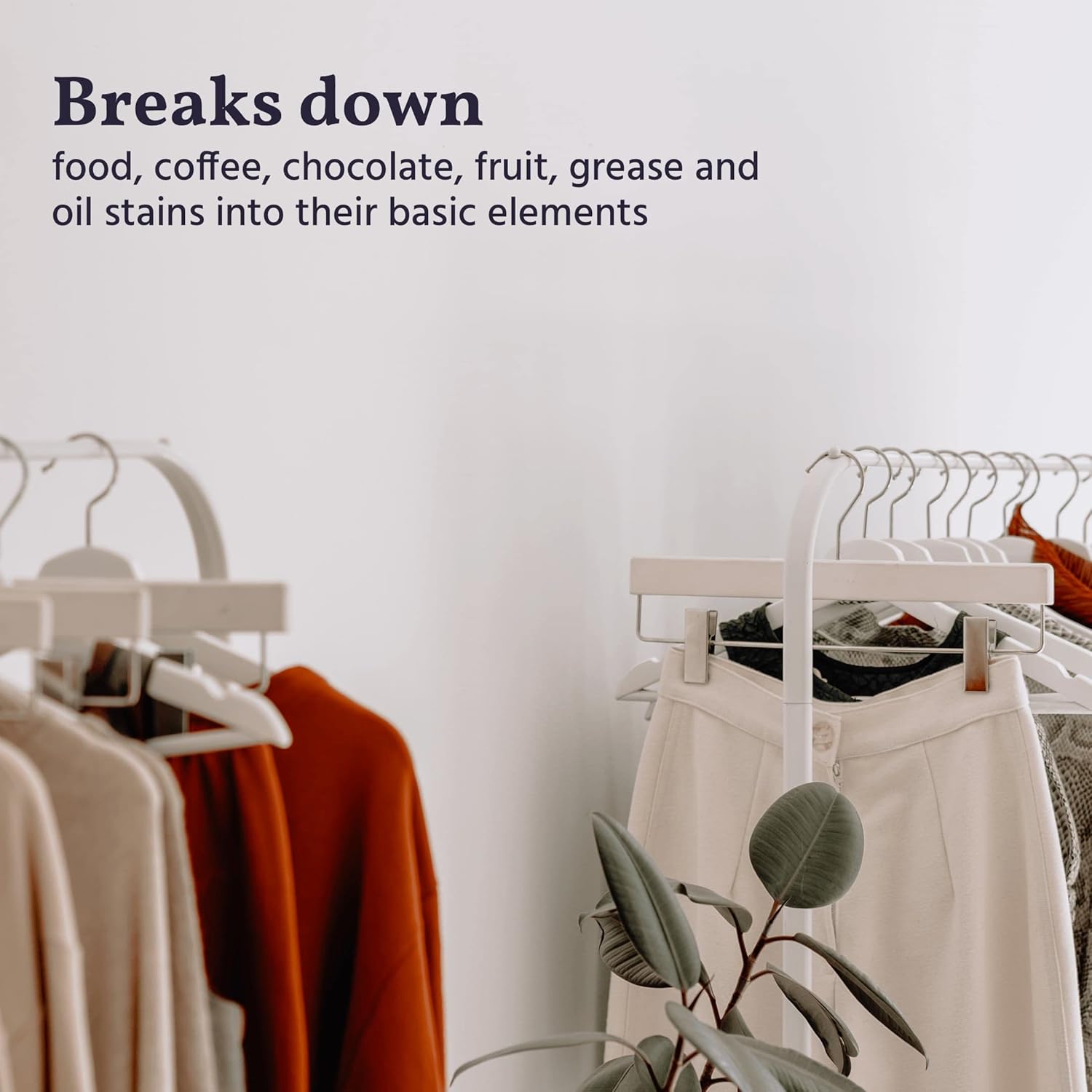 - EVEN THE TOUGHEST STAINS AND SPOTS DISAPPEAR. Coffee, tea, blood, chocolate, and fruit juice stains simply fall apart when our plant-based enzymes break down the organic proteins, starches, and oils that caused them.