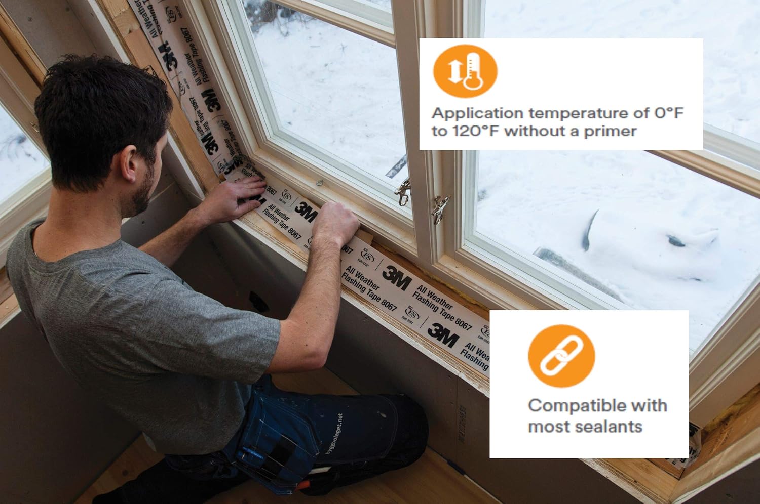 - BONDS TO MOST COMMON BUILDING MATERIALS with surface temperatures as low as 0F (-18C) or as high as 176F (80C). It even adheres to damp surfaces.
