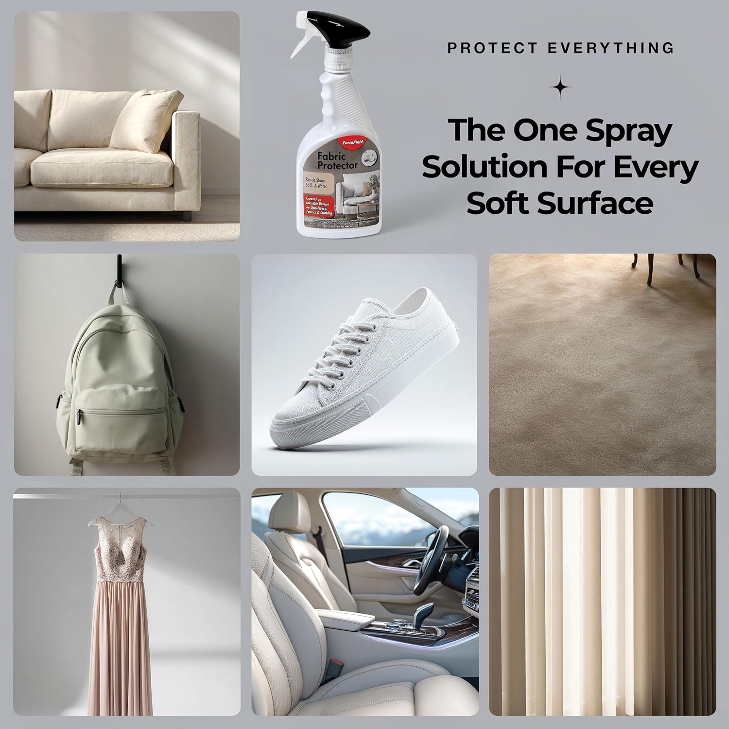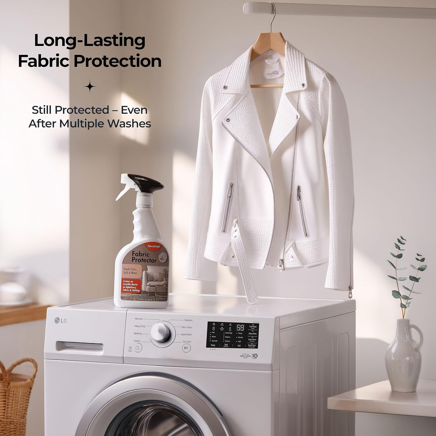 - Trusted Fabric Protection – Forms an invisible barrier that repels water and oil-based stains before they set in.