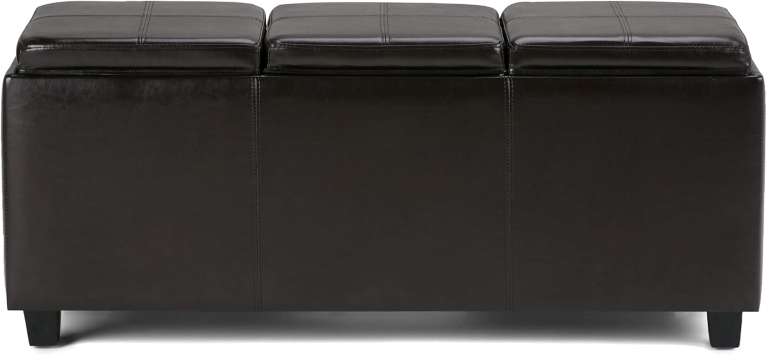 SIMPLIHOME Avalon 42 inch Wide Contemporary Rectangle Storage Ottoman in Tanners Brown Vegan Faux Leather, Assembled, for the Living Room, Entryway and Family Room