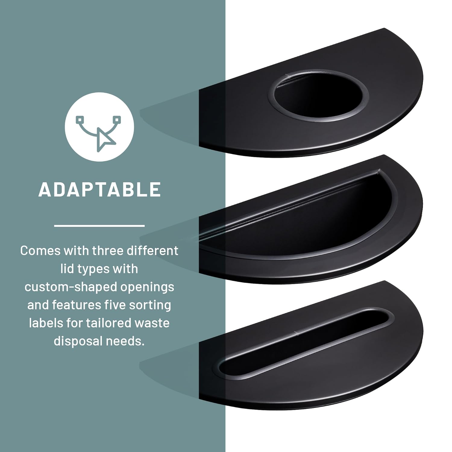 Safco Trash Can, 15 Gallon Garbage Bin with Dual Trash and Recycling Lids, Half Round, Black